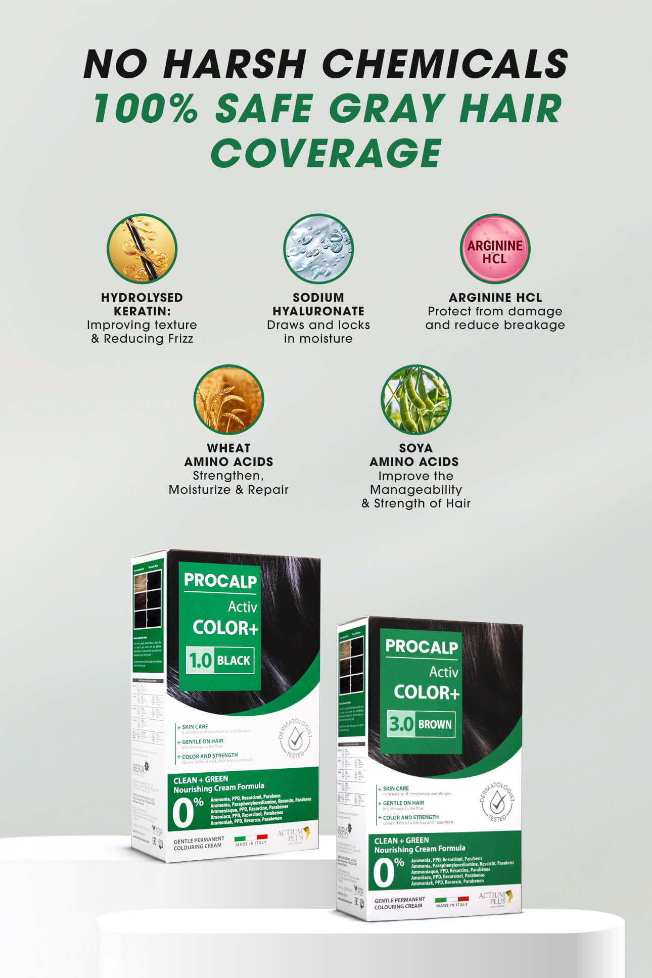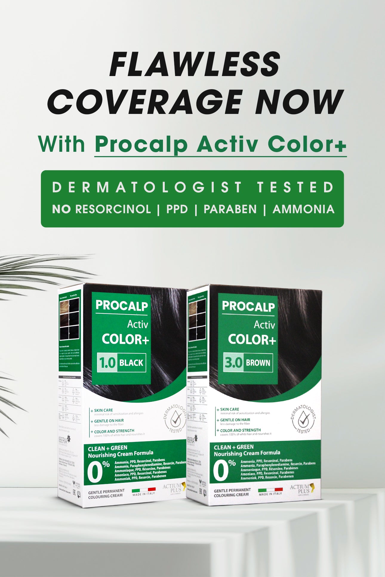 Actium Plus PROCALP Activ Color+ | (3.0-BROWN) | Permanent Hair Color | Dermatologist-tested | For Men/ Women | 60ml