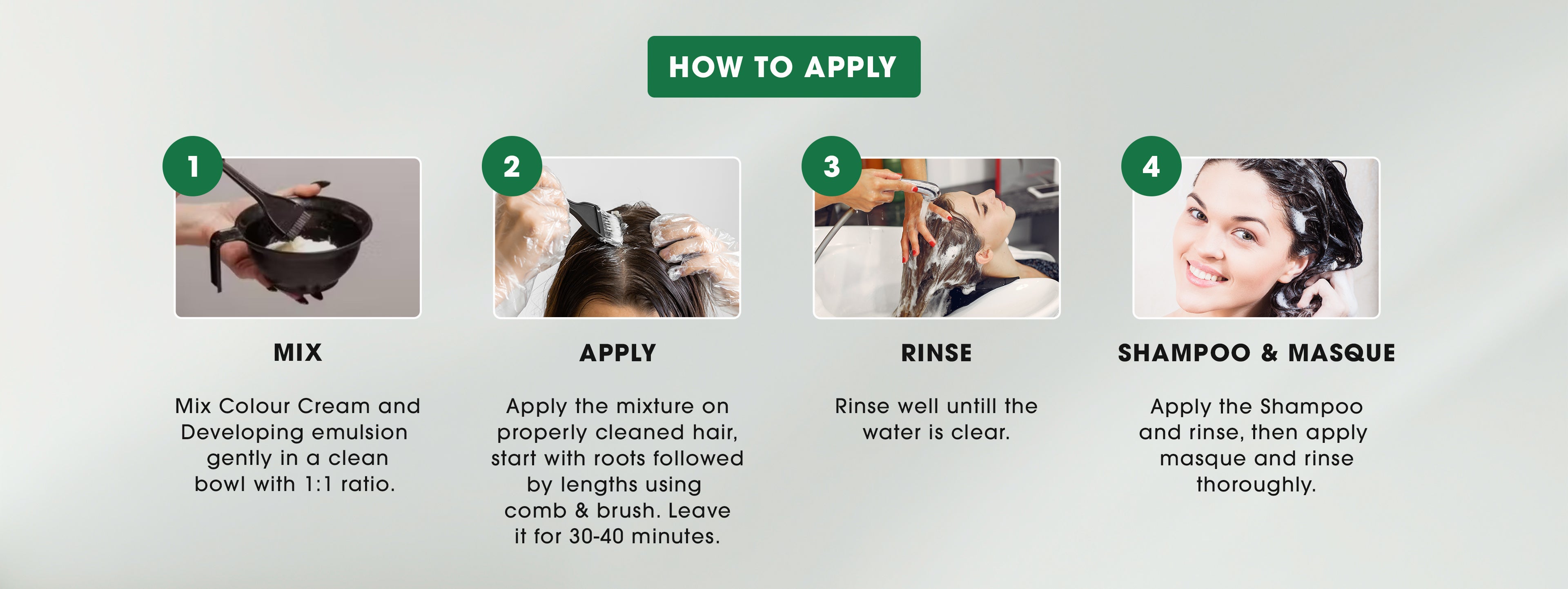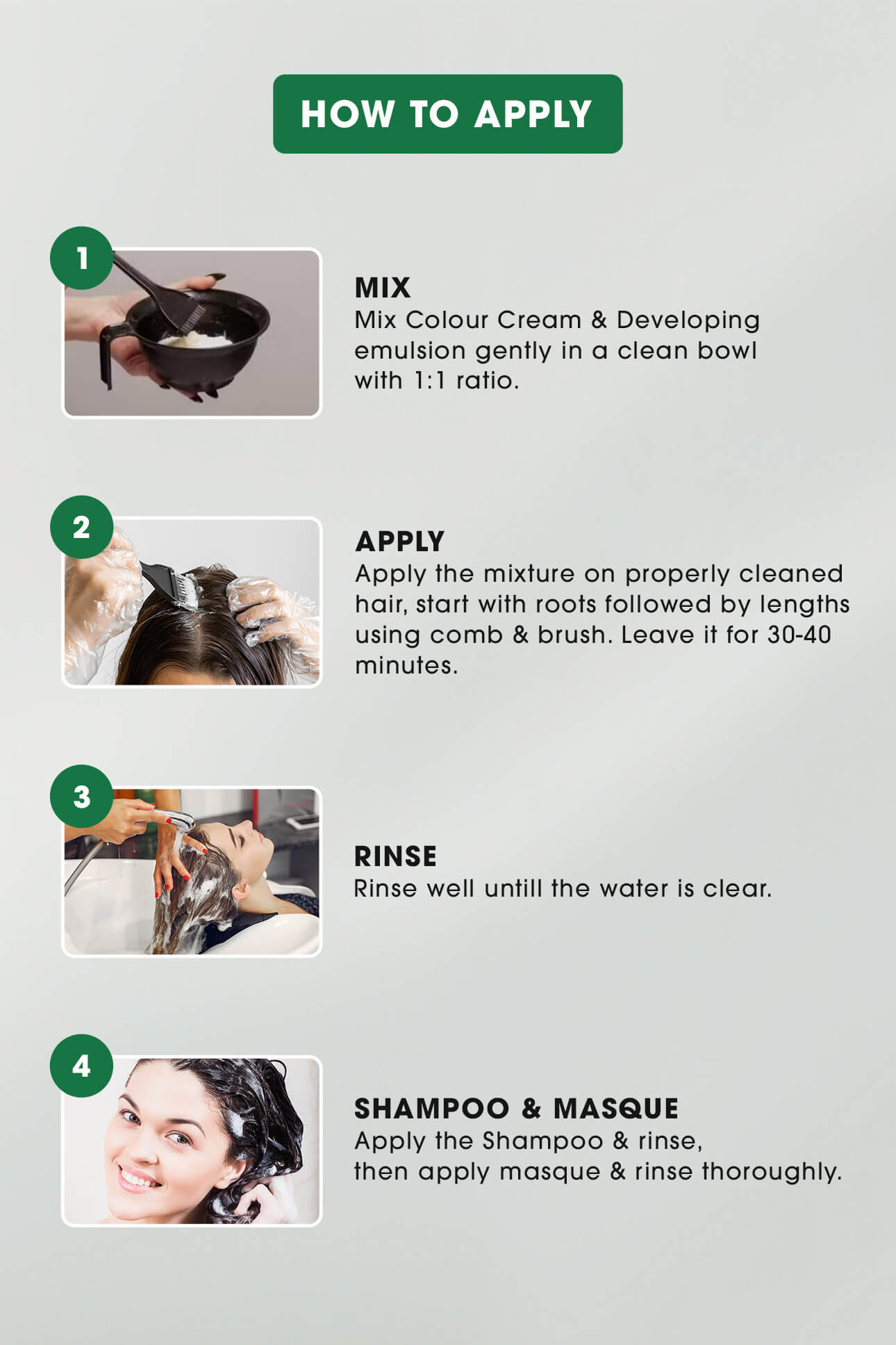 Step1: Mix Color Cream and Developing emulsion gently in a clean bowl with 1:1 ratio.
