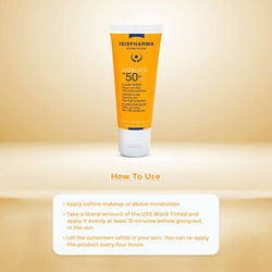 Step2: Take a liberal amount of the UVE Block Tinted and apply it evenly at least 15 minutes before going out in the sun.